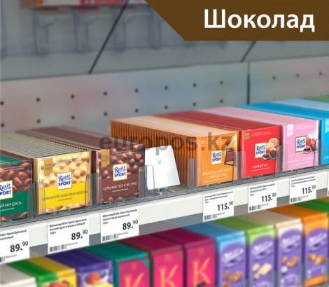 Наклонный пружинный толкатель FORTA QUADRA-0 с квадратной наклонной толкающей поверхностью размером 75х74 мм без ограничителя предназначен для широких и невысоких продуктов средней и высокой тяжести, например квадратных плиток шоколада, вафель, приправ и специй. Пружинный толкатель используется с товарами в устойчивой упаковке в комбинации с передними ограничителями.ы