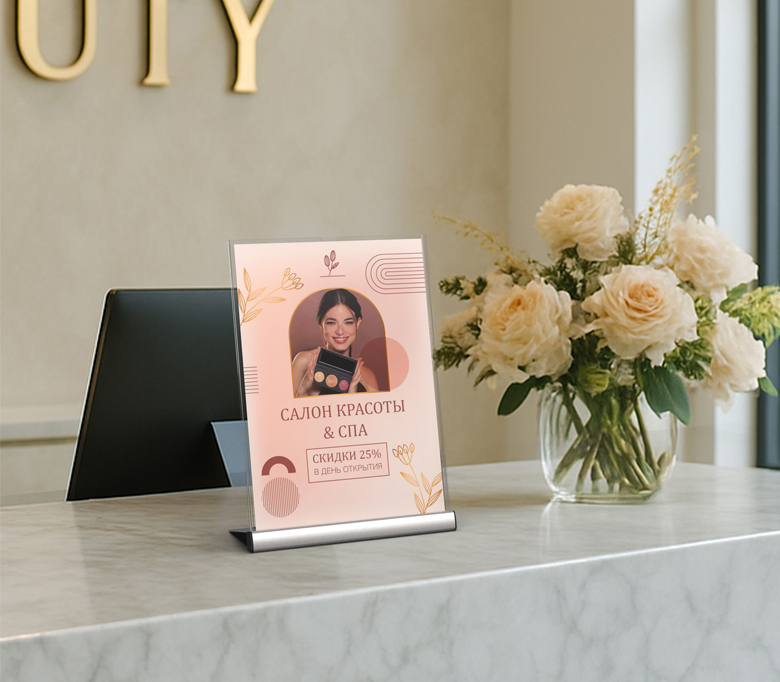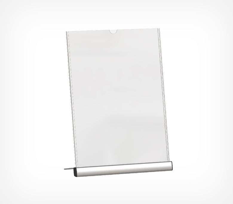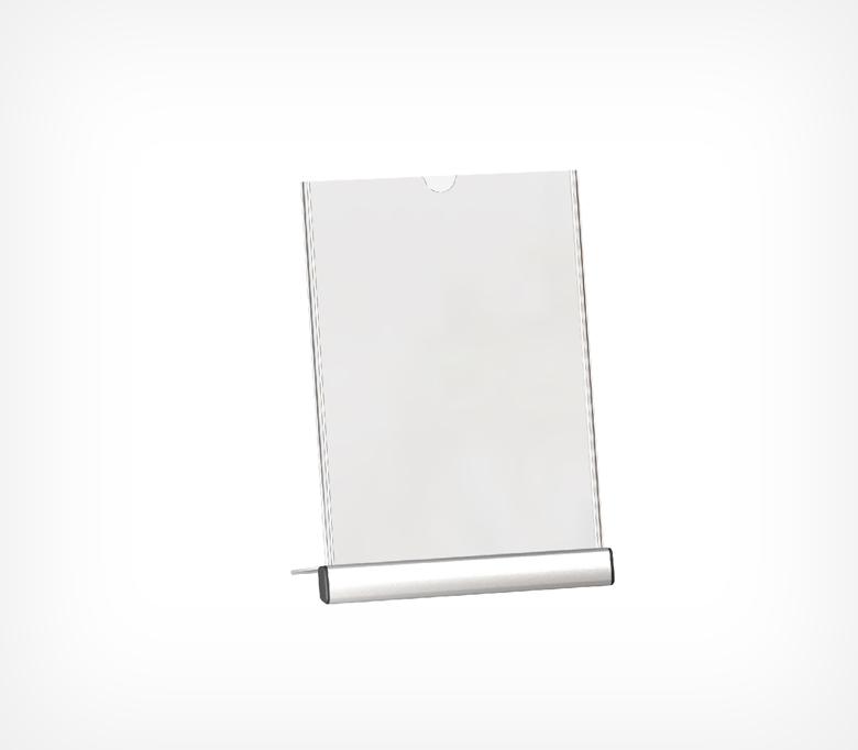 Менюхолдер SIGNHOLDER ALU-Stand — премиальная подставка с углом наклона 75°, обеспечивающая комфортный обзор и современную подачу информации. Верхняя загрузка упрощает замену материалов, а прочное алюминиевое основание гарантирует надёжность и устойчивость. Выпускается в форматах A4 и A5. Используется в кафе, магазинах, аптеках и салонах красоты.