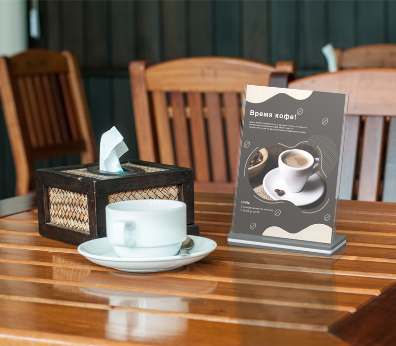 Менюхолдер SIGNHOLDER L-Stand — стильная подставка с углом наклона 75°, обеспечивающая удобный обзор и лёгкое восприятие информации. Верхняя загрузка позволяет быстро менять материалы, а прочное пластиковое основание гарантирует устойчивость. Выпускается в форматах A4 и A5. Используется в кафе, магазинах, аптеках и салонах красоты.