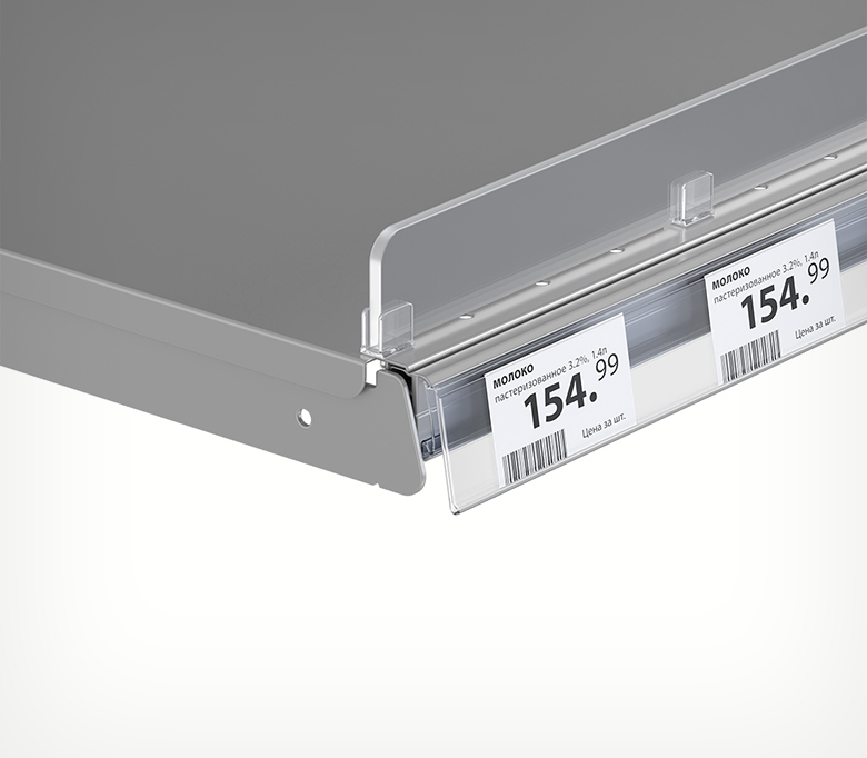 Ценникодержатель полочный предназначен для размещения ценников на полки ARNEG. Полностью заменяет профиль IPF39, и при этом имеет более кофортную посадку ценника на стеллаж при монтаже. Гибкой откидное крепление минимизирует поломки ценников при монтаже и позволяет комфортно брать продукт с полки при невысоком межполочном пространстве.
