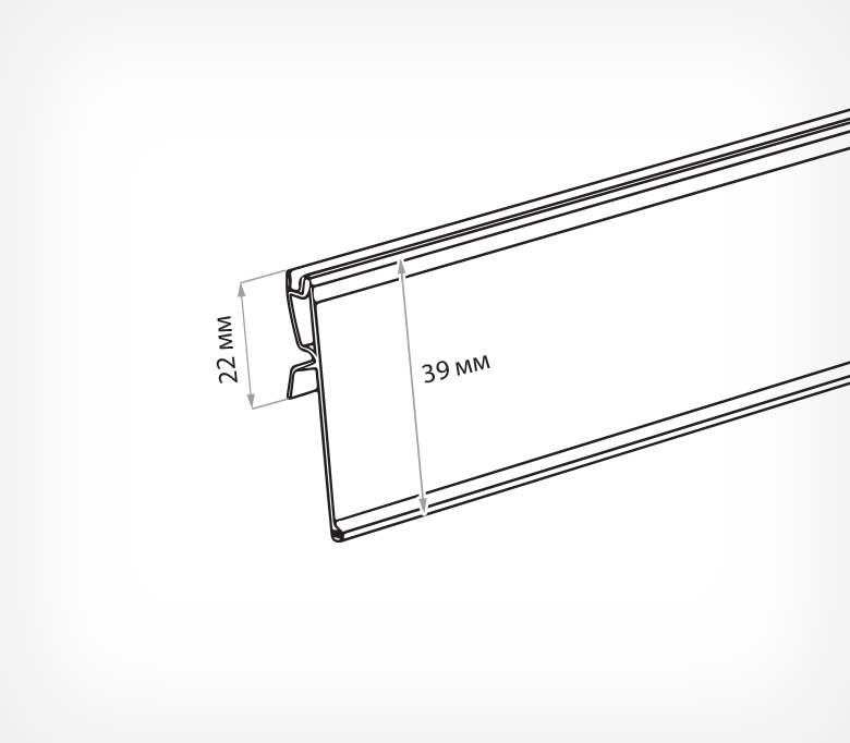 HSAC-G39 — современный откидной ценникодержатель для полок, служит для удобного размещения ценников на торговом оборудовании с С-образным торцевым профилем, используемом в стеллажах KIFATO, LA FORTEZZA, ALSER, NORDICA, HERMES, Микрон, БорТоргТехМаш (БЗТО). Особенностью модели является пружинящий замок, который обеспечивает плотную и устойчивую посадку даже на полках с неидеальной геометрией. Откидной принцип крепления защищает ценники от повреждений и упрощает их замену. Используется в магазинах самообслуживания, аптеках и складских помещениях для поддержания аккуратного и упорядоченного внешнего вида витрин.