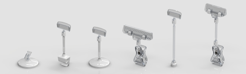 Данную группу ценникодержателей объединяет общий принцип работы на шарнирном соединении с максимальной подвижностью элементов ценникодержателя между собой.
