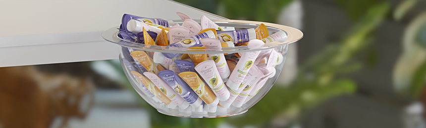 Компактные пластиковые дисплеи-чаши для выкладки мелкого товара используются как правило в прикассовой зоне или в качестве кросс-мерчендайзинговых дисплеев для выкладки сопутствующих товаров. В прикассовой зоне дисплеи способствуют увеличению количества импульсных покупок, и соответственно, среднего чека.