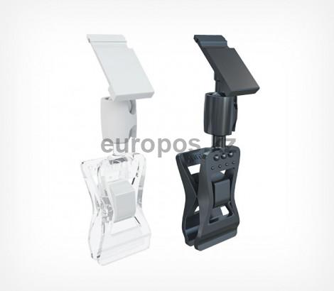 Прищепка FSX-PC для установки кассет цен на край посуды, коробов и трубчатых емкостей с толщиной крепления не более 10 мм. Соединение в виде подвижного шарнира, позволяет располагать ценник под разными углами к поверхности.