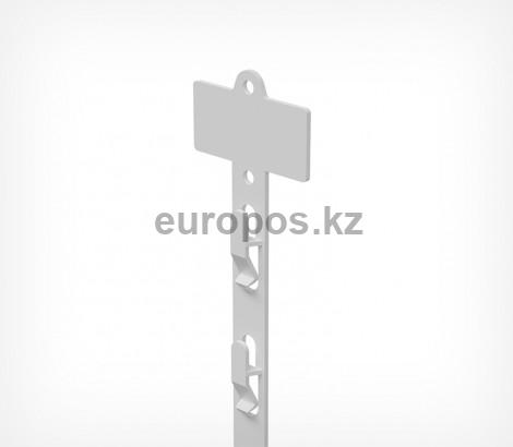 Лента пластиковая для подвеса, цвет белый. Может крепиться на крючках и хомутах, для чего в верхней части ленты предусмотрено специальное отверстие. Для размещения в прикассовой зоне. На длину одного изделия приходится 12 крючков с увеличенным шагом 62 мм, вверху поле для нанесения стикера с логотипом или иной информацией о товаре. Позволяет размещать товар наглядно в ряд, снимать одним движением, выдерживает до 7кг нагрузки.