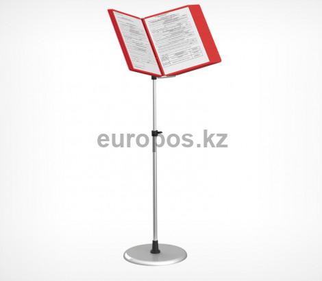 Аналог пюпитра для пластиковых рамок, собранных в виде прейскуранта или меню: прочная, регулируемая по высоте стойка. Держатель создан из прочного нержавеющего сплава и имеет круглое основание диаметром 310мм. Перераспределение нагрузок позволяет использовать стойку для пластиковых рамок А4 без опасения перевеса. Перемещается без проблем и рассчитан на 10 рамок.