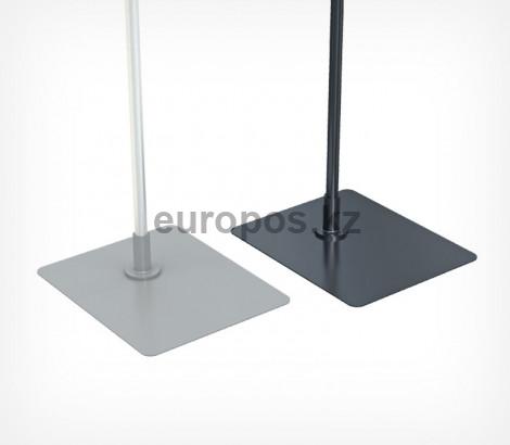 Устойчивая металлическая подставка для установки пластиковых рамок большого и среднего формата. Прочность конструкции достигается за счет особого сплава и покрытия. Металл не боится коррозии, сама форма имеет закругленные края, что исключает вероятность пораниться при переноске или транспортировке. Подставка комплектуется специальным пеньком, который позволяет фиксировать трубки диаметром 9мм или 12мм.