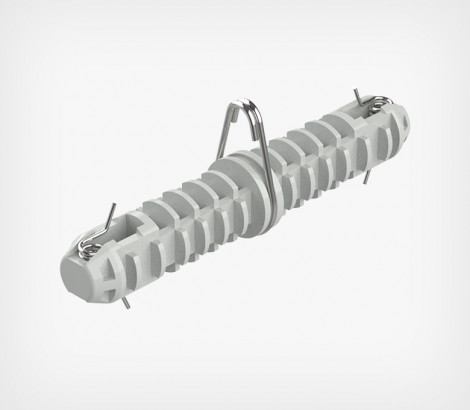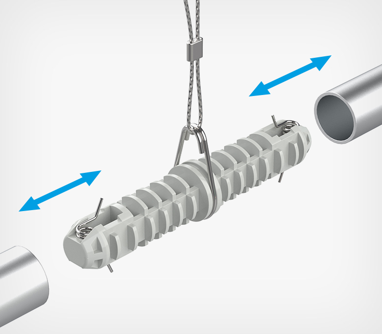 Пластиковый соединитель AIR-I-FIX надёжно соединяет два профиля AIRTRACK в единую конструкцию. Оснащён металлической петлёй и пружиной для прочной фиксации и удобного подвеса системы к потолку на трос или цепь.