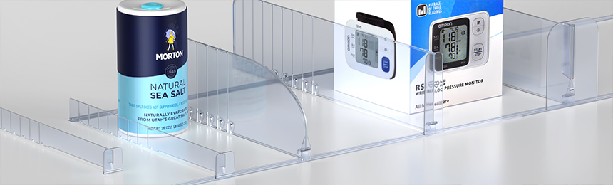 Разделители с замочными креплениями позволяют организовать порядок в витрине, систематизировать товары и рационально использовать полочное пространство. Фиксируются на полке при помощи специального профиля, который может быть на магнитной или клеевой ленте.