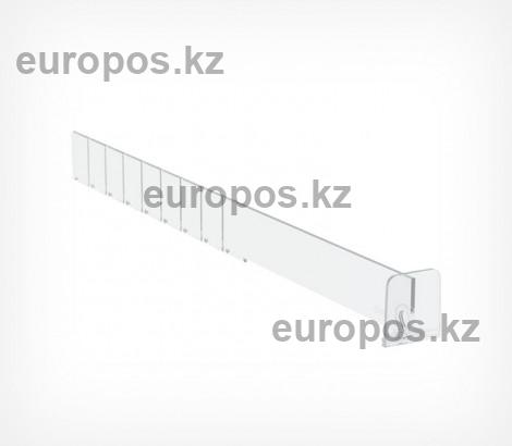 Легкий, но ударопрочный пластиковый разделитель прозрачного цвета с Т-образным передним ограничителем на конце, который предотвращает падение товаров с переднего края полки. Разделитель высотой 30мм применим для выкладки некрупных товаров, например, мелкой канцелярии, упаковок со скобами, сигарет, мыла и т.д. Возможен также вариант без Т-ограничителя.
