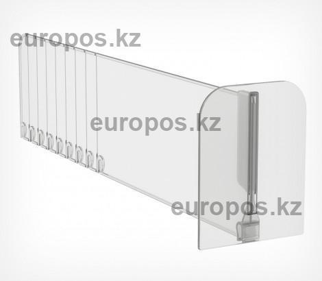 Разделители имеет насечки для обламывания с шагом 25 мм, что позволяет уменьшить разделитель под размер Вашей полки. Материал прозрачный ударопрочный пластик.