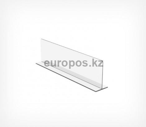 Пластиковый универсальный разделитель, на Т-основании, с высотой стенки 80 мм. Применяется для создания упорядоченной выкладки на полке. Не требует профиля для крепления на полку. Конструкция разделителя проста в использовании, так как он прижимается к полке товаром.