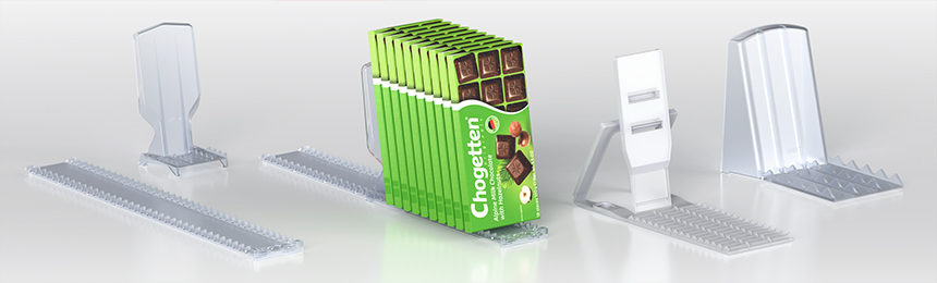 Один из самых незаменимых и распространенных систем организации полочного пространства - это использование полочных разделителей с задними опорами. Рекомендуем воспользоваться функциональным и надежным решением, демонстрирующим «товар лицом» - нарезка в вакуумной упаковке, плиточный шоколад, приправы.