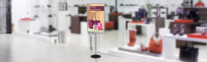 - установка штендеров с рамами перед входом в магазин и на торговой площади;