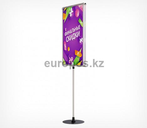 Рекламная телескопическая стойка с двумя прозрачными рамками формата А1 на Т-образным держателе с перекладиной. Позволяект разместить рекламу с лицевой и задней стороны стойки. Оптимальна для использования в качестве рекламного носителя в зоне распродаж и для паллетной выкладки. Рамки крепятся на двухстороннем подвесном креплении. Стойка укомплектована двумя прозрачными рамами PF А1 формата с креплением на подвесных крючках, и регулируемой по высоте телескопической трубкой (от 1000 до 1950 мм.) с устойчивым основанием. Легкая смена рекламной вставки.