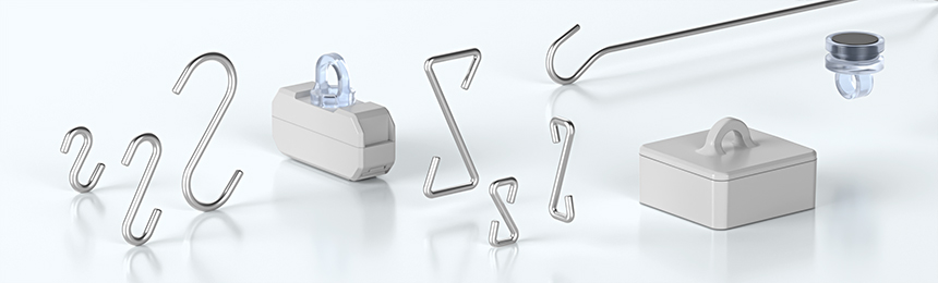 В современной торговой точке используются очень много рекламных конструкций, подвешиваются как к основному торговому оборудованию так и самостоятельно по торговому залу. Для крепления мобайлов, вывесок и плакатов используются различные крепления, такие как карабины, кольца, цепочки, крепления со скотчем и зацепами для потолка. При выборе вида крепежа для подвешивания прежде всего нужно ориентироваться на вес прикрепляемого изделия и поверхность к которой планируется изделие прикрепить. Для более легких конструкций используются пластиковые кольца и карабины. Тяжелые же, требуют металлических креплений и усиленных креплений на скотче.