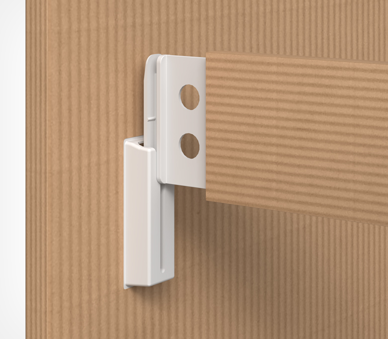 Крепление, которое используется при изготовлении картонных стендов, а именно для крепежа полок. Держатель позволяет быстро устанавливать и снимать картонную полку.