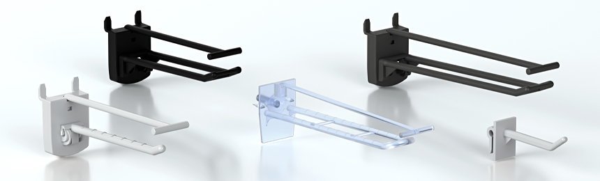 Служат для вертикальной выкладки и подвешивания легких товаров в плоской или небольшой упаковке. Это могут быть аксессуары для обуви, товары для дома, косметика, конфеты и мармелад, детские игрушки, одежда, канцтовары.
