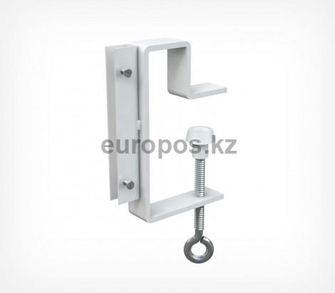 Держатель- струбцина с металлическим П-держателем и отгибом (обходом ценника), в котором вставляемая информация прижимается винтами. Предназначена для размещения стопперов из толстого пластика, картона и акрила к полкам толщиной до 40 мм, оснащенным ценниками или бортиками. Металлический П-держатель длиной 85 мм позволяет обеспечивать надежное крепление стопперов толщиной до 5 мм.
